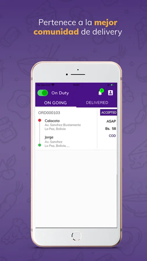 · Recibir notificaciones de solicitudes de delivery en tu campo de acción.