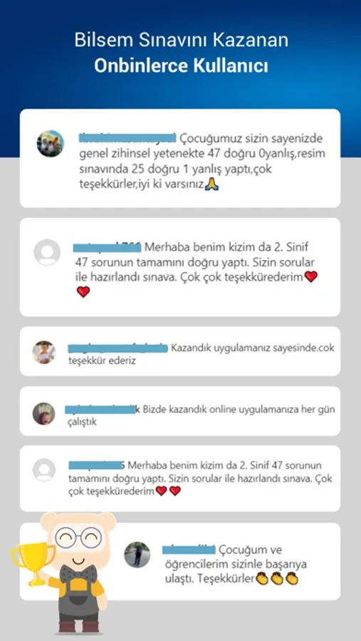 • On binlerce BİLSEM sınavını kazanan kullanıcı,