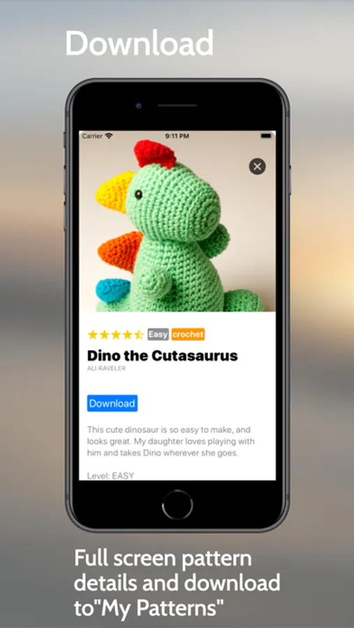 Ravelgurumi provides a simple way to find and download amigurumi (soft toy) patterns on your iPhone or iPad to knit or crochet.