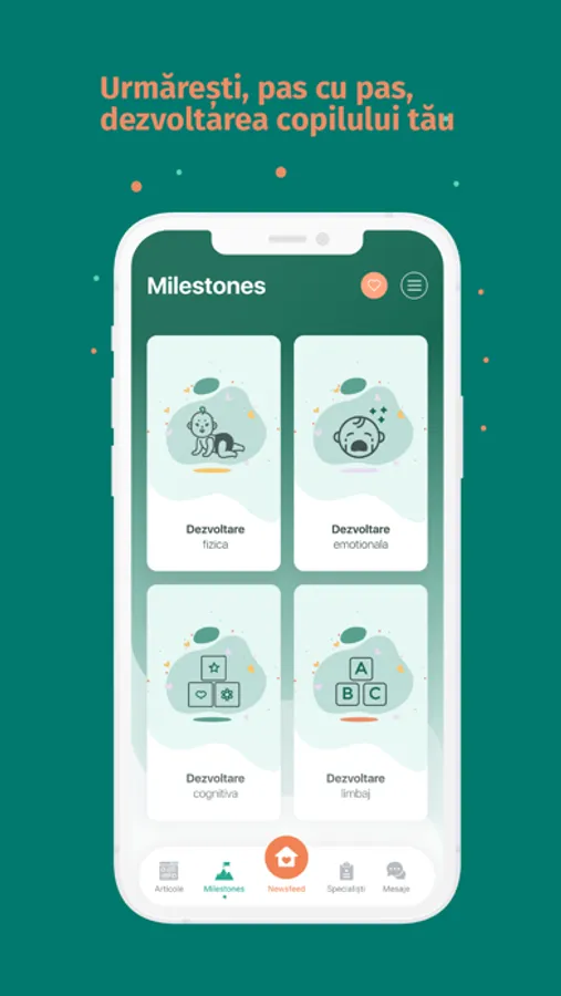 • Verifică milestone-urile de dezvoltare (0-36 luni)