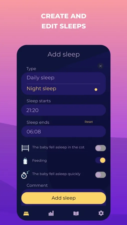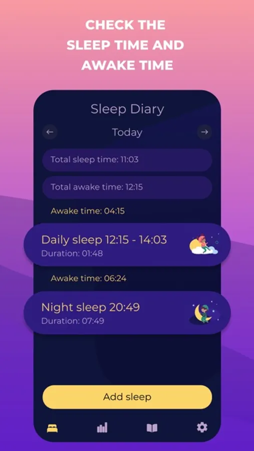 The sleep diary allows you to monitor your baby's sleep and awake time.