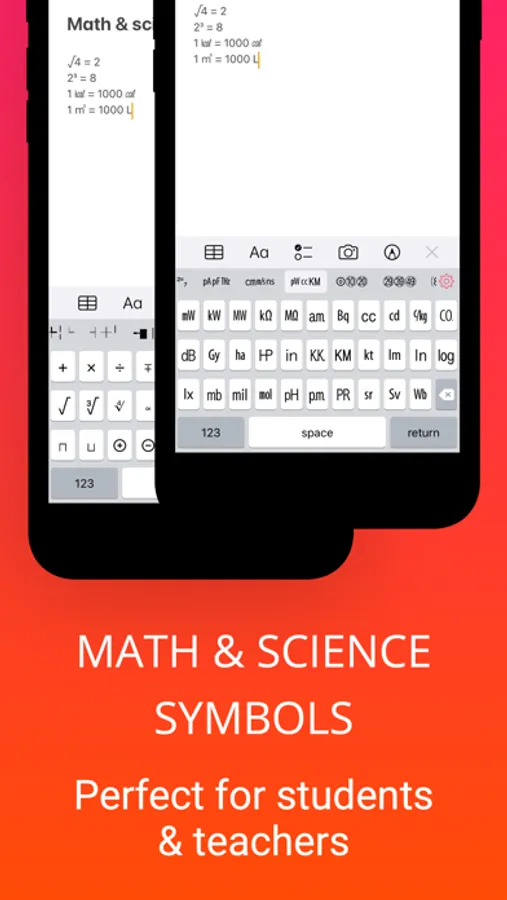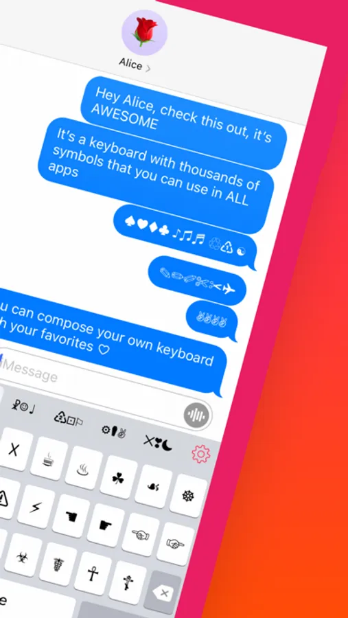 Install the keyboard once, and enjoy in all apps. Simply switch keyboard to access the symbols.