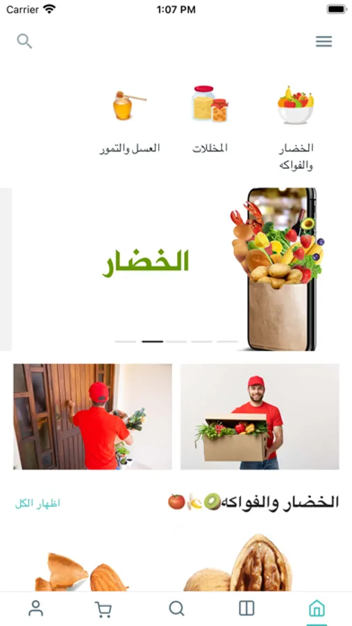 فرش لبيع جميع المنتوجات الطازجة مثل الخضروات الفواكة والعسل والمنتوجات المعلبة والمخللات والمواد التموينية واللحوم والأجبان وغيرها