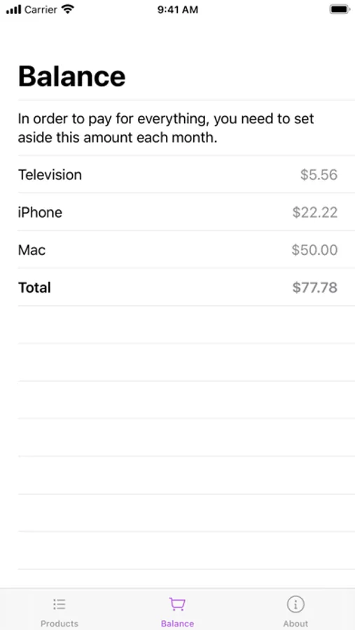 CashBuddy is an app that calculates how much money you need to save each month in order to pay for all your products and services.