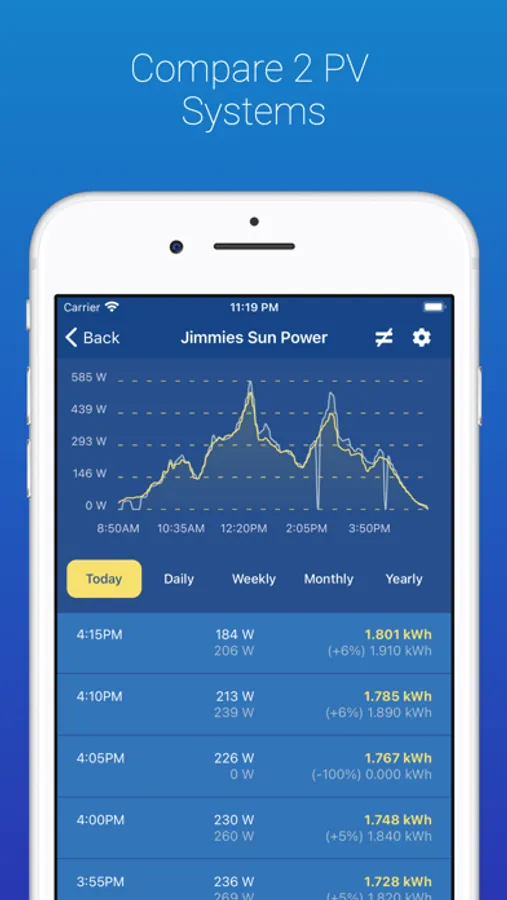 * Compare your output with the output of any other Solare system on PVOutput.org