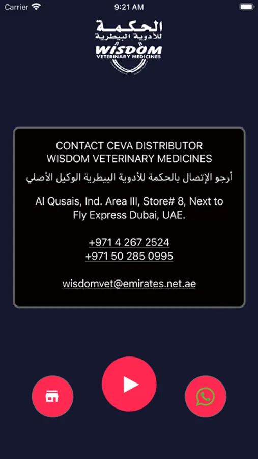 This simple app is built by Ceva’s UAE Distributor, Wisdom Veterinary Medicines.