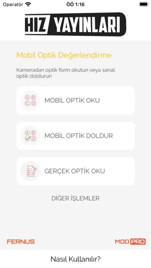 ■ Mobil Optik Değerlendirme uygulaması MOD-PRO'yu açın. Formunuzu okutun.