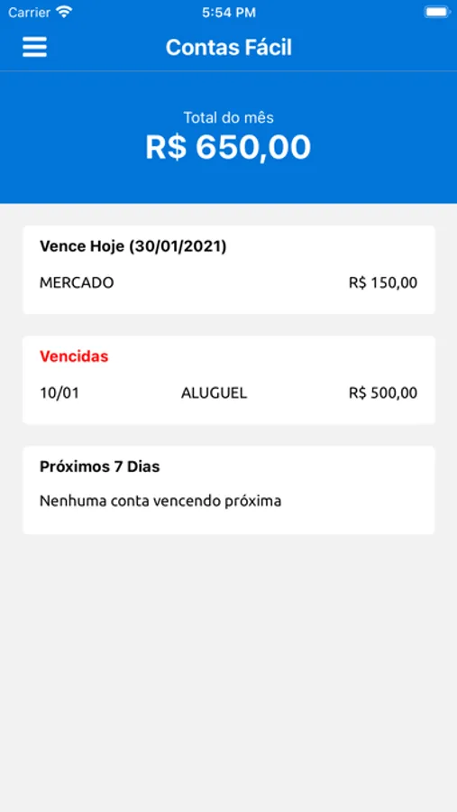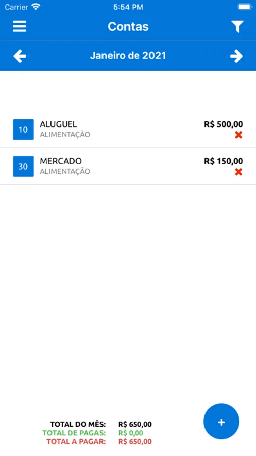 Aplicativo gratuito para controle de suas contas a pagar, com categorias personalizáveis, relatórios de contas por categorias mensal e anual. E um dashboard completo com os totais do mês e as próximas contas a vencer, vencidas e do dia.