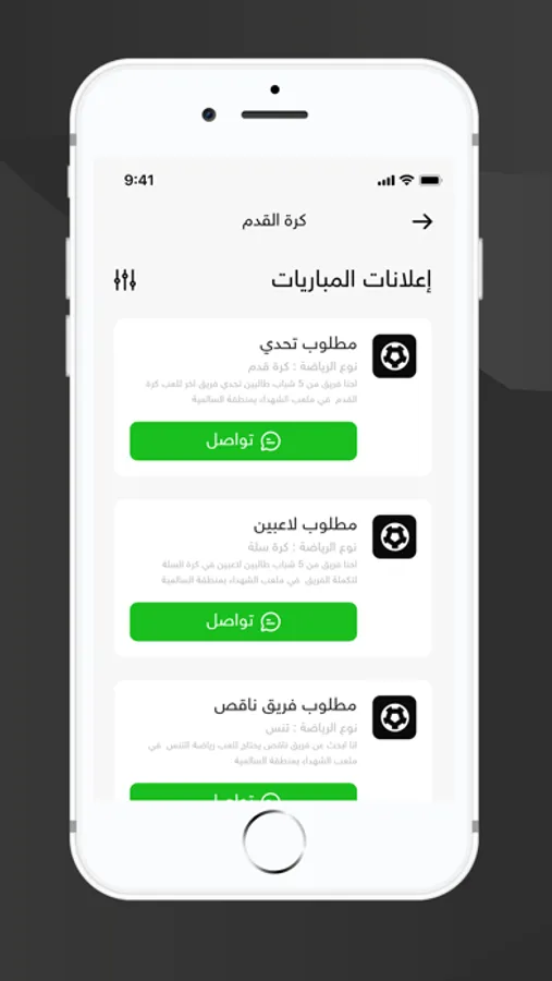 •البحث عن اشخاص لكي يشاوكوك رياضتك المفضلة.