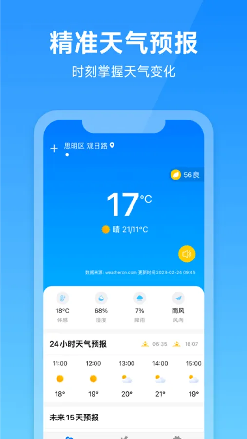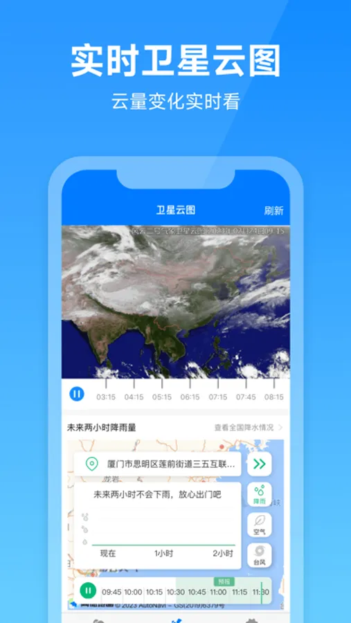 [实时天气预报]日出日落时刻精准,未来24小时的实时天气预报一目了然,每日推送天气通知帮助您养成每日查看天气预报的好习惯。