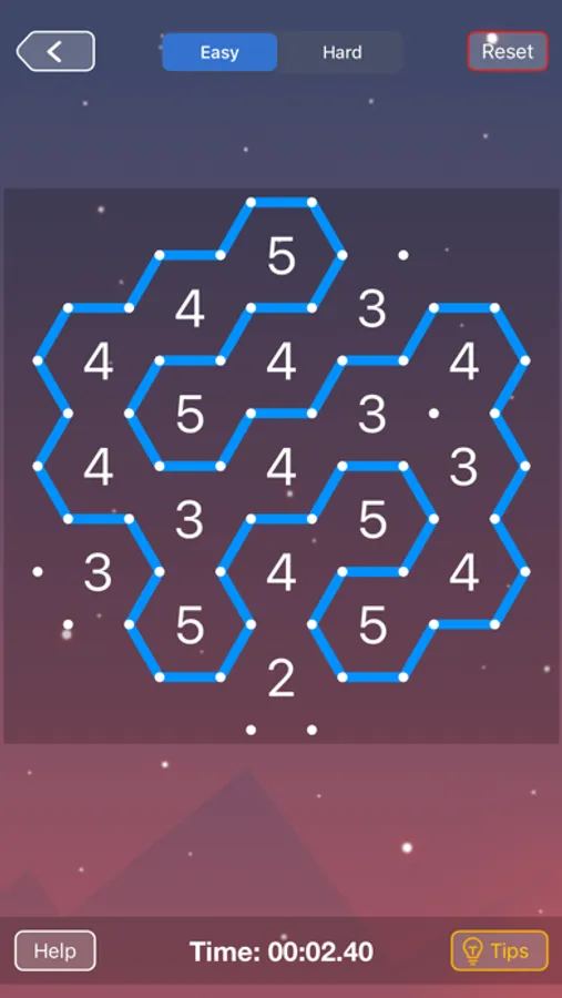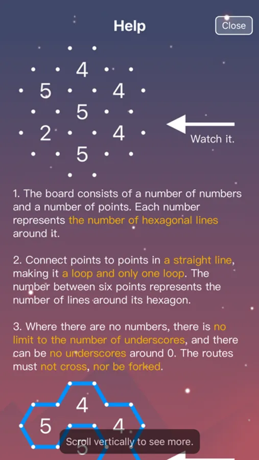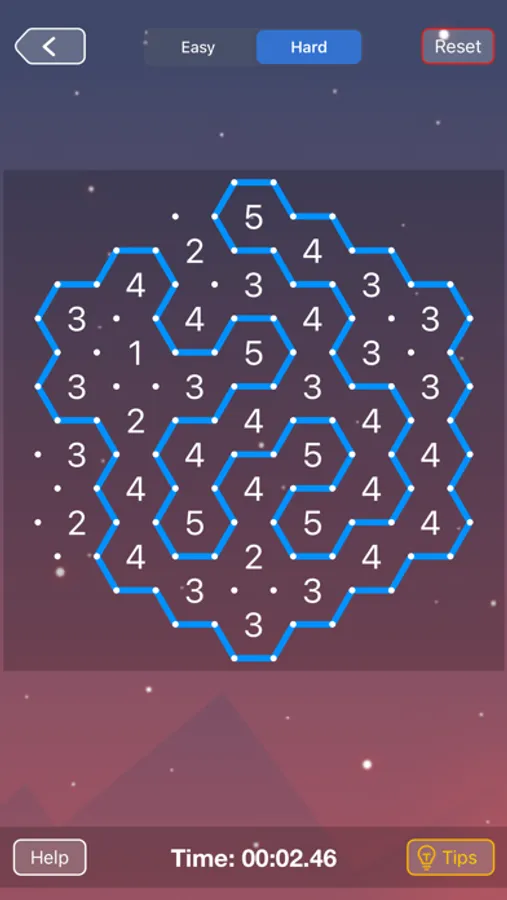 2. Connect points to points in a straight line, making it a loop and only one loop. The number between six points represents the number of lines around its hexagon.