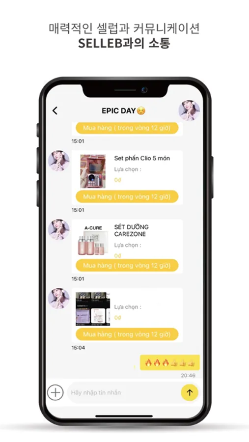 판매자와 구매자가 대화방에서 대화를 나누며 쇼핑 전문가들이 엄선한 하이 퀄리티의