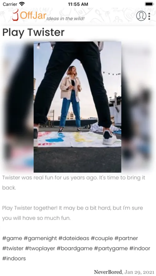OffJar aims to build long and meaningful relationships. Offjar helps couples to tighten their bonds and spend quality time. Offjar provides date night ideas for couples when they are out of ideas. Offjar presents romantic, adventurous, simple, long, short, seasonal, virtual, fun, and educational ideas. Offjar establishes a pair-bonding through various activities.