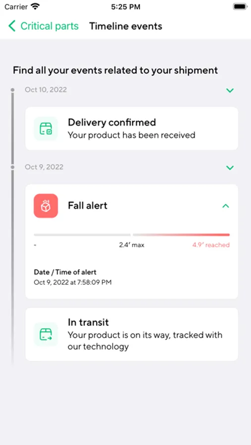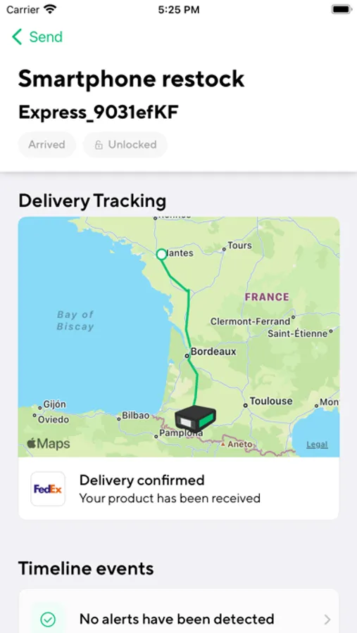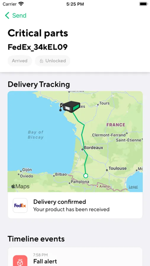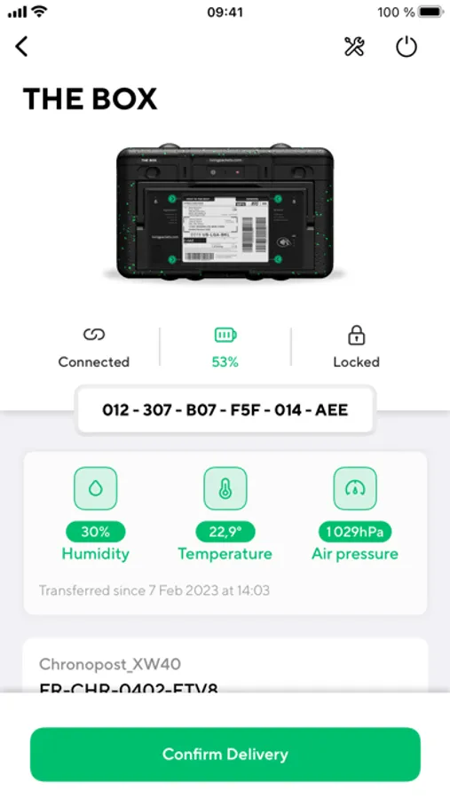 The LivingPackets Partner application gives you full control over all your shipments. Whether you are receiving or sending you can follow the location of your shipment, get updates on temperature, humidity, air pressure, unauthorized openings, forces acting on your parcel and more.