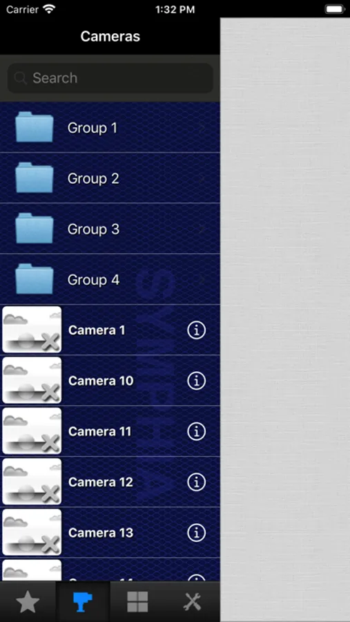 • Easy access to cameras from the Camera Tree, Favorites or Recents.