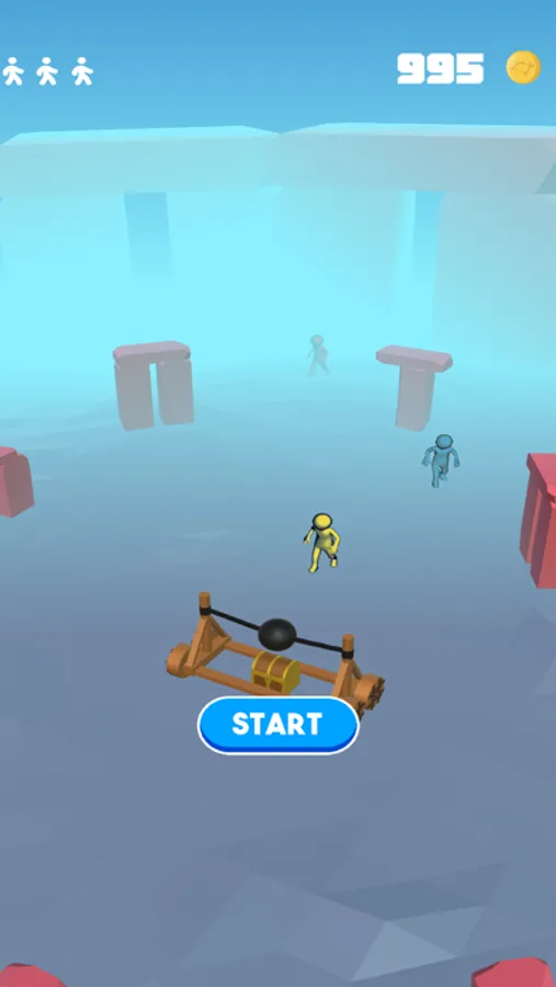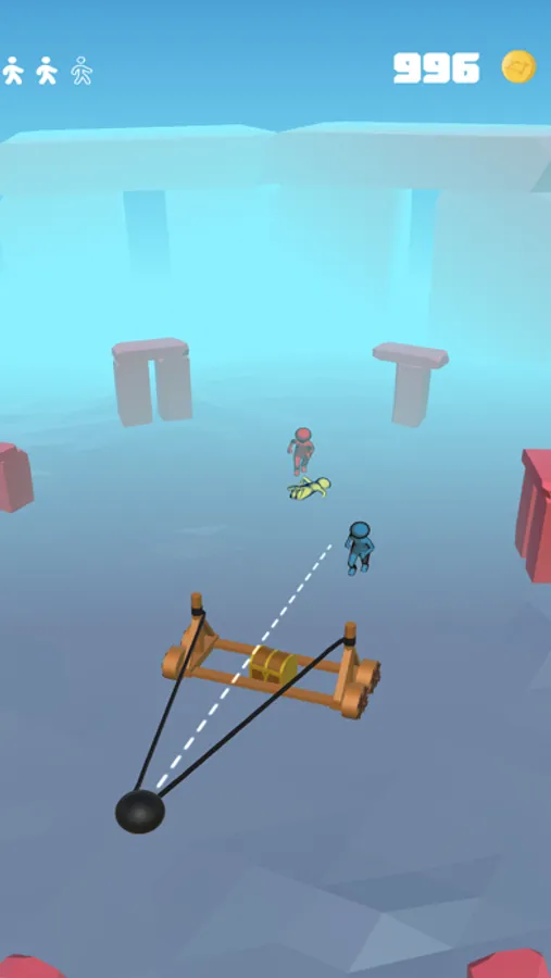 Trace your way to the end of the level and push the enemies with your stick on the way!