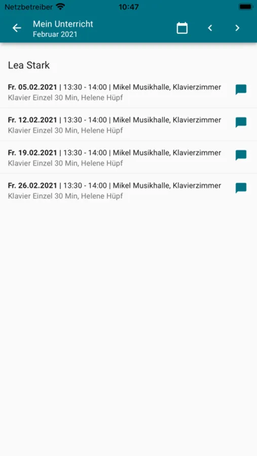 Alle Funktionen zum Austausch von Nachrichten zwischen Lehrkräften, Eltern, Schülern und der Musikschule setzen keinerlei Kontaktinformationen voraus. Die Übermittlung von Nachrichten erfolgt über eine App-interne ID. Zum Chat und Nachrichtenaustausch sind keine E-Mail-Adressen oder Handynummern erforderlich!