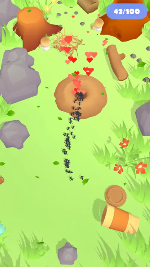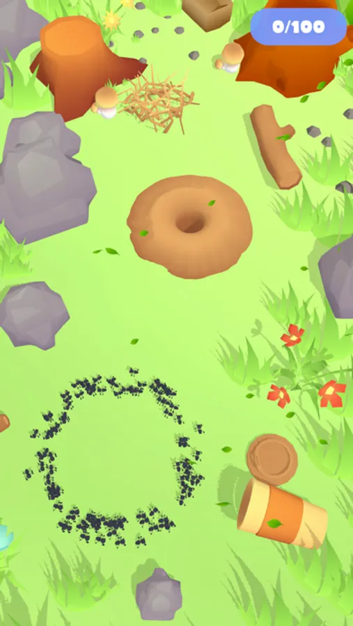 The ants are entangled and run in circles. Help the ants get home. Remove obstacles in their path and direct them in the right direction.