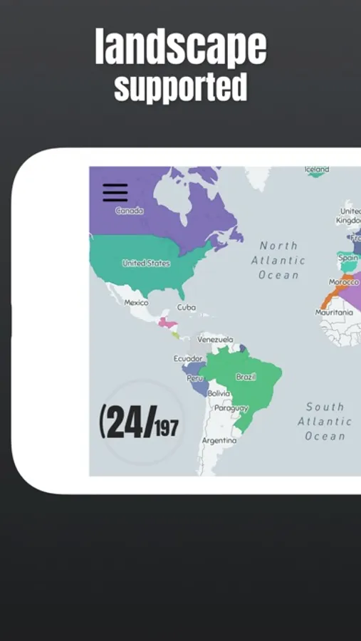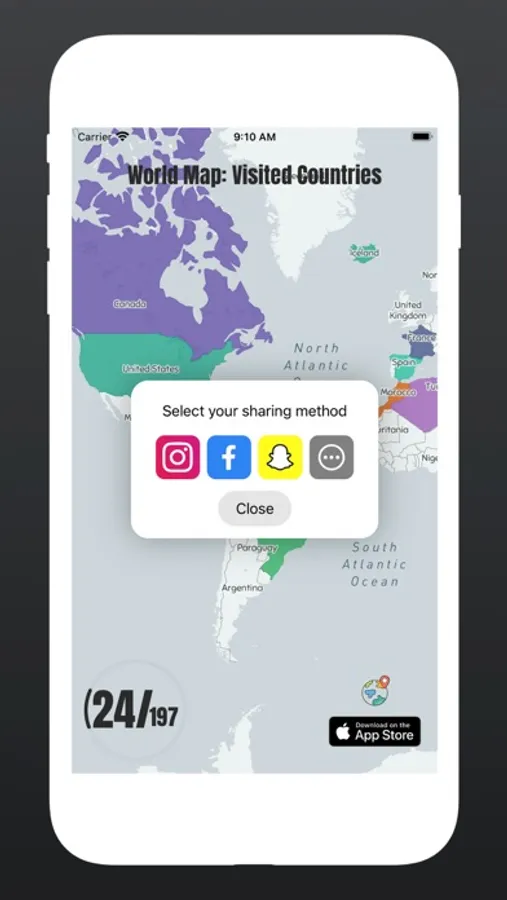 With this app you can easily track the number of countries you've visited by just adding them to the map! A beautiful random pastel color will fill the country. Don't like the color? Just shake your device to recolor the map!