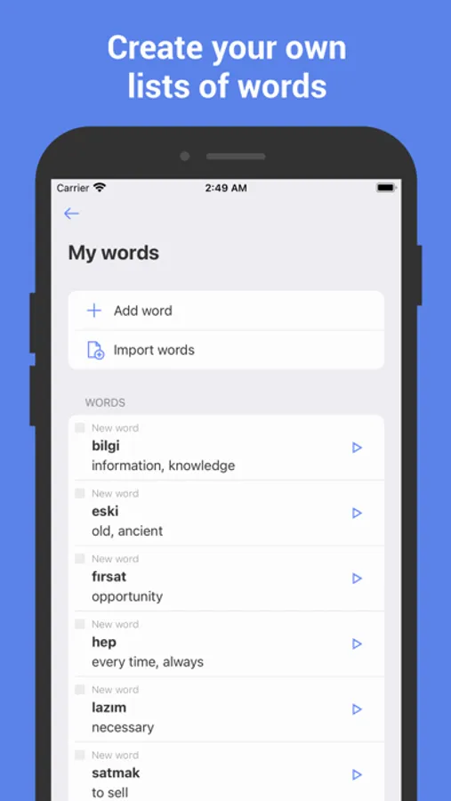Learning Turkish? Memorize Turkish words efficiently and improve your vocabulary!