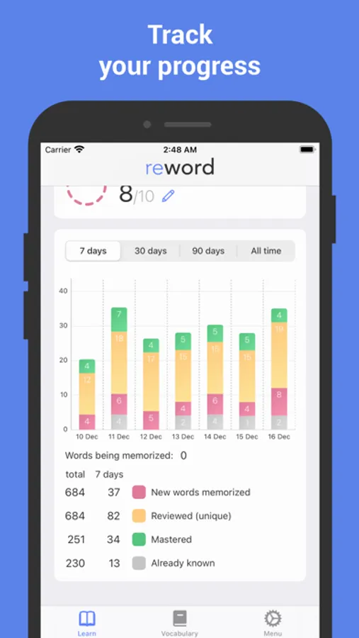 • Statistics: track your performance in learning Turkish words for the last week, month, three months and the last year.