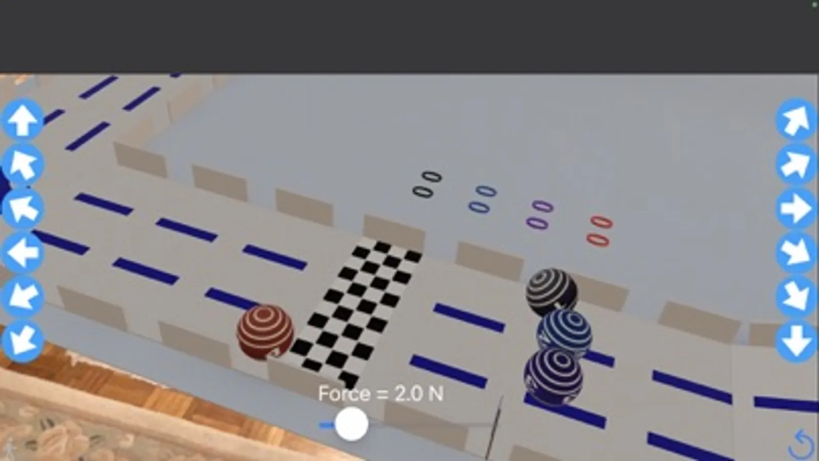 For both play modes, Force can be between 1N and 10N (Newtons). If a player applies more successive taps, a bigger force will be applied and the ball’s speed will be bigger.