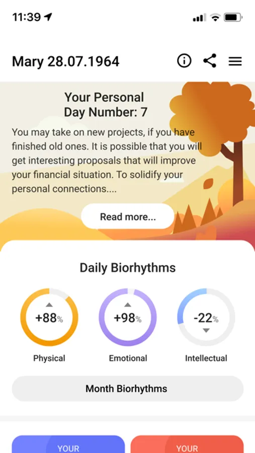 - Daily and monthly Biorhythms