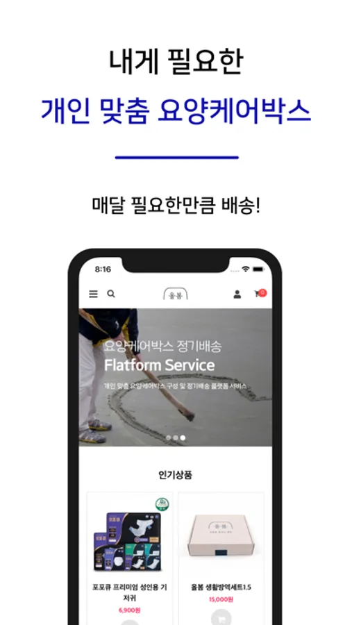 요양케어박스, 생활 방역용품 정기배송 플랫폼 서비스 올봄 입니다.