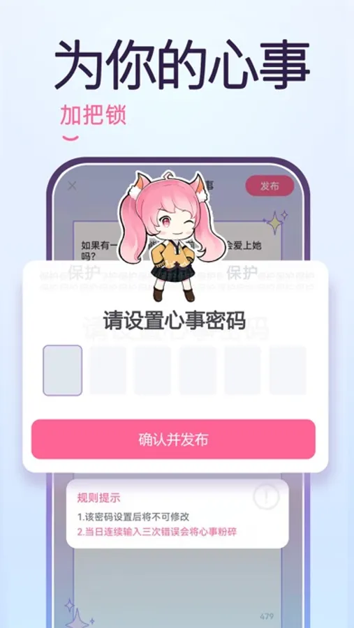 匿名发表搭配心事锁,双重保险,为你的心事加个密!