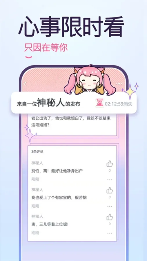 特定心事限时展示,一小时、一天、或者永久,你的心事你说了算!