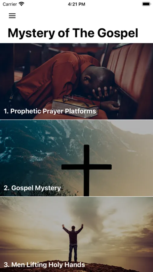 The Mystery of the Gospel app contains audio messages and written articles and posts about the mysteries in the Word of God (The Holy Bible). It contains several categories focusing on different aspects of life presenting a biblical perspective.