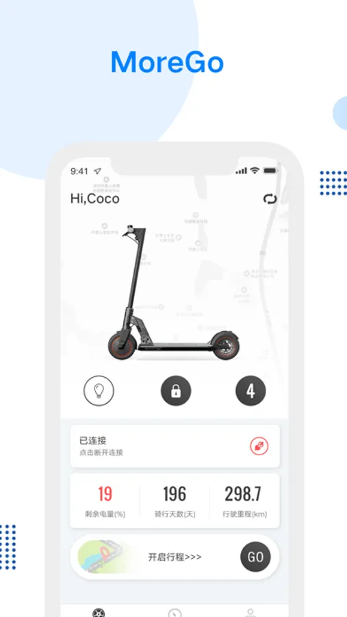 Using MoreGo allows you to connect and use the corresponding scooter, which can control the light bulb switch, gear adjustment, unit switch, start mode and OTA upgrade function of the scooter more conveniently.