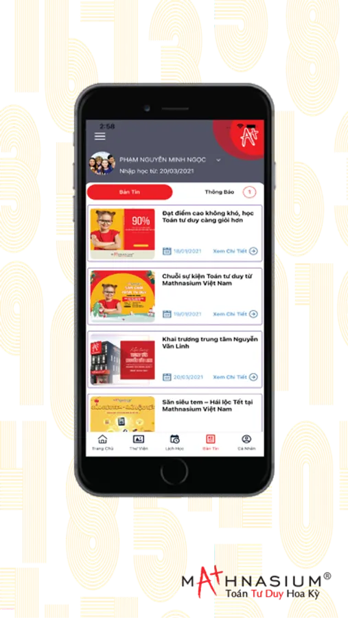 - Thông báo các chương trình, hình ảnh, tin tức của hệ thông Mathnasium