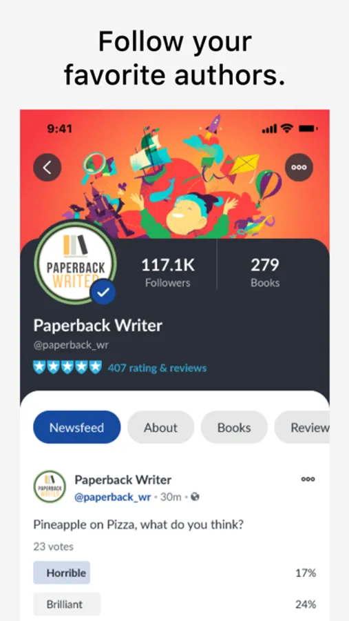 - Follow your favorite authors and get notified of their latest offerings;