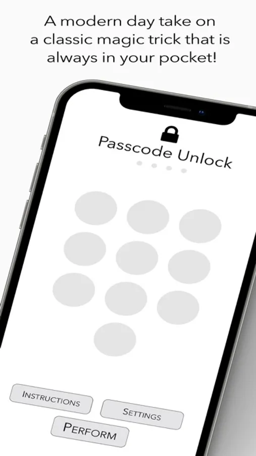 Passcode Unlock is a magic application that will allow you to perform a mind-blowing mentalist effect using a fake iOS lock screen. Using your iPhone, you can use the fake lock screen to correctly decipher your spectators exact date of birth (including the year). You will also have the ability to give your device to your spectator for them to input a 4- or 6-digit passcode that supposably unlocks your iPhone. Finally, with an in-app purchase you can invisibly see any passcode inputted into your phone by the spectator on the fake Lock Screen of the magic app.