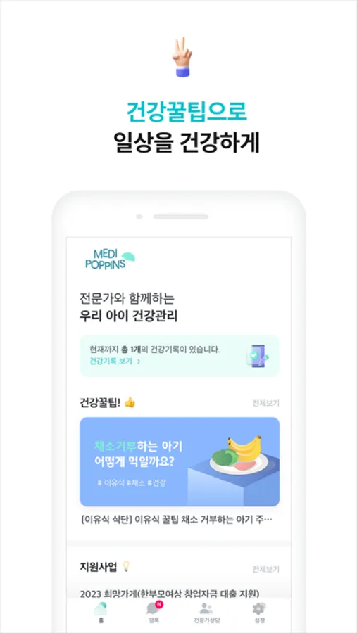메디포핀스를 통해 실시간 전문가 상담, 최신 건강 관리 정보, 건강기록 관리 서비스를 무료로 받아 보실 수 있고, 커뮤니티 활동을 통해 다른 한부모 가정과 즐겁게 소통하실 수 있습니다.