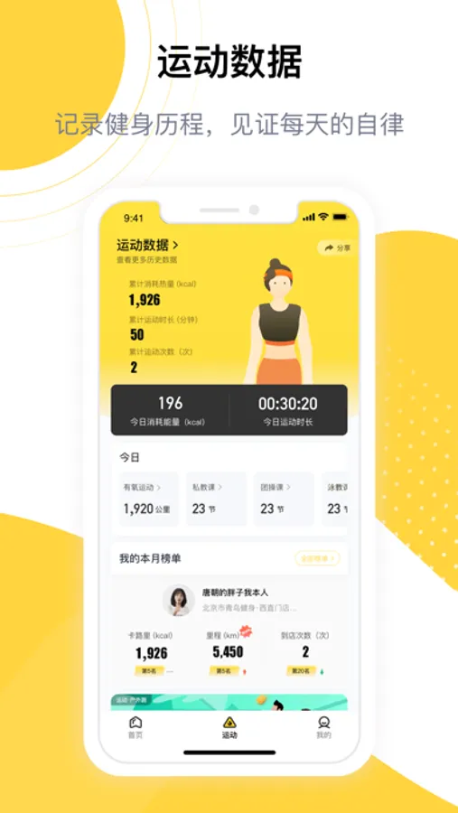 有氧运动、课程信息,体测数据,练多多记录你的进步