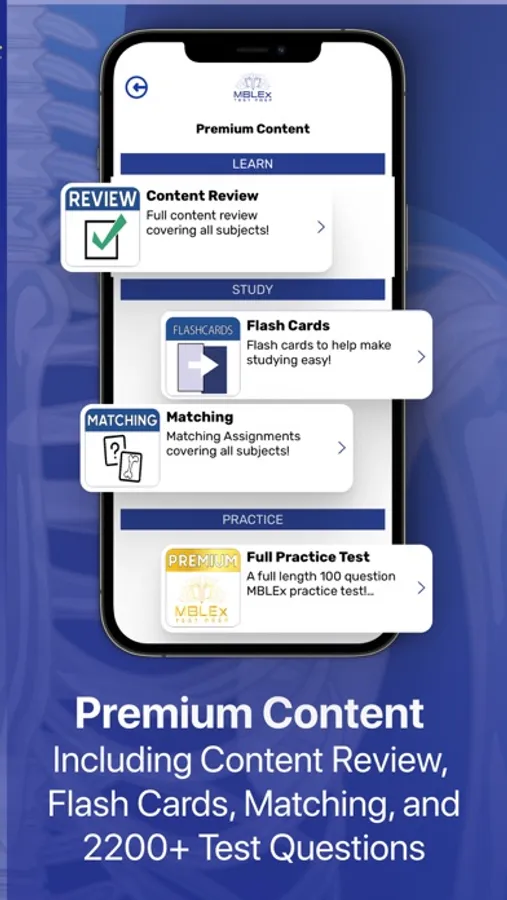 Upgrade to Premium to unlock a comprehensive content review covering every subject, over 1600 pre-made flash cards, and over 2200 practice test questions, the brand new matching assignment, and the complete MBLEx Test Prep Podcast archive!