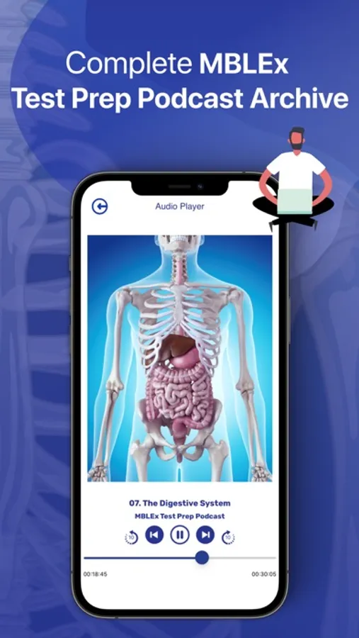 Free content includes 100 practice test questions covering Massage Therapy, Anatomy and Physiology, Pathology, and Kinesiology, one free Question of the Day, and a selection of episodes from the MBLEx Test Prep Podcast!