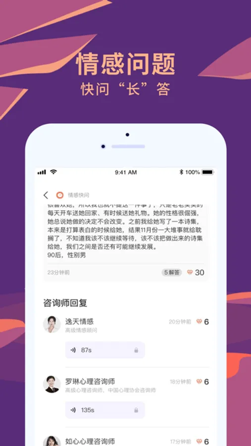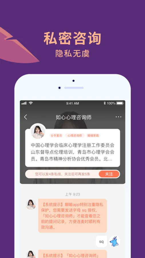 聊喻 app 团队主打情感倾诉和咨询。为有困扰、需要倾诉、期望被倾听和指导的用户提供情感、恋爱、婚姻、家庭、心理、生活等方面困扰的咨询服务。更注重在咨询全流程的隐私保护,不仅提供了主动的隐私策略,用户更可自行选择删除/隐藏某些内容,乃至一键清空数据。