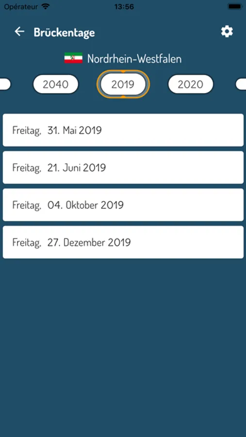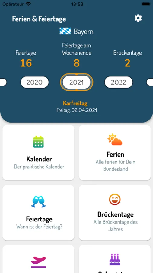 Plane Deinen Urlaub mit der "Deutsche Feiertage & Ferien"-App. Sie hilft Dir bei der optimalen Planung über die Feiertage, Ferien und Brückentage deines Bundeslands. Die voll konfigurierbare App unterstützt Dich dabei mit komfortablen Kalender- und Listen-Ansichten. Plane Deinen Urlaub effizient über die Brückentage eines Jahres hinweg.