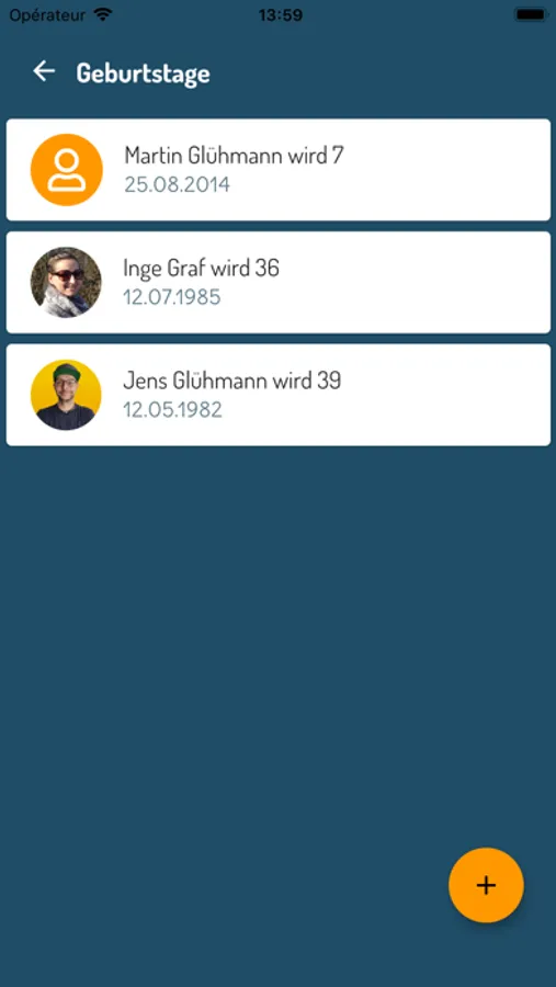 Füge die Geburtstage deiner Familienmitglieder und Freunde ein. Nutze das Startbildschirm-Widget um immer die nächsten Geburtstage im Blick zu haben.