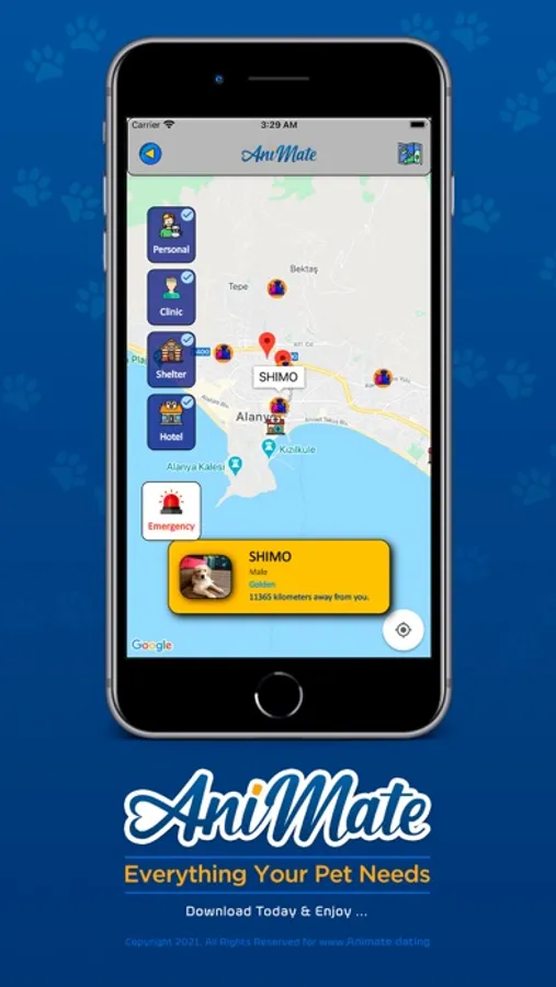 The pet owners can visit other animals’ profiles and choose filters to find their desired animal. Filters include address, sex, sterilization status, etc. People can also chat with each other inside Animate to get more information about their intended pet. The app has a unique feature to show all the animals, shelters, and hospitals on the map. You can easily find the services that you require near your location.