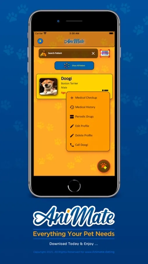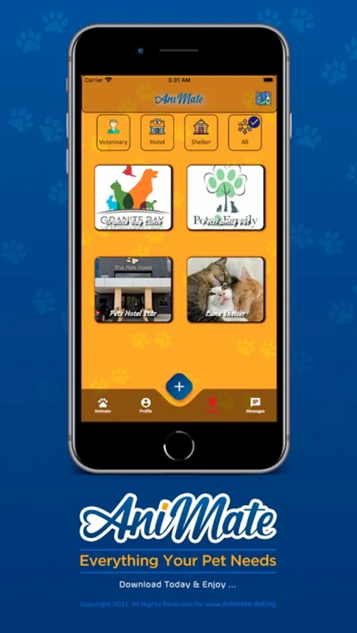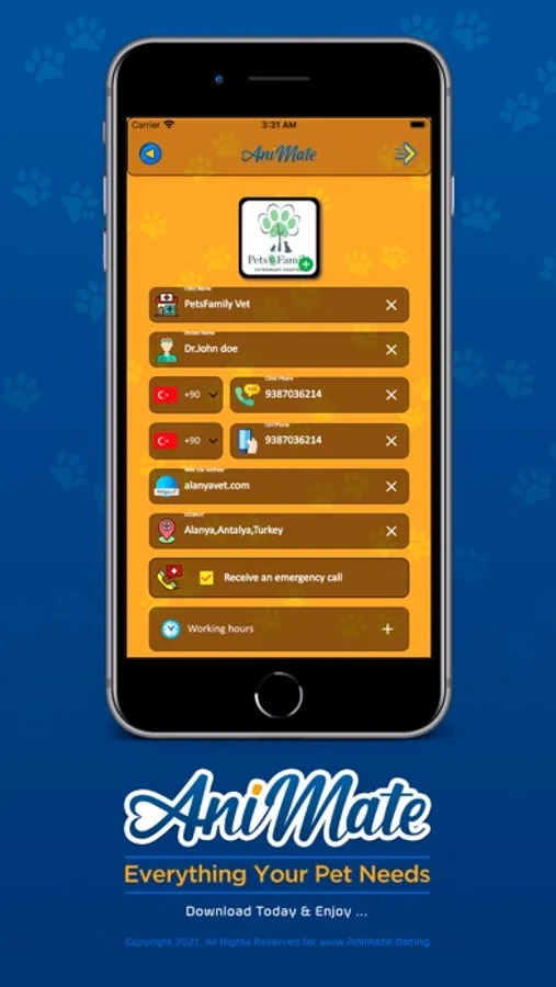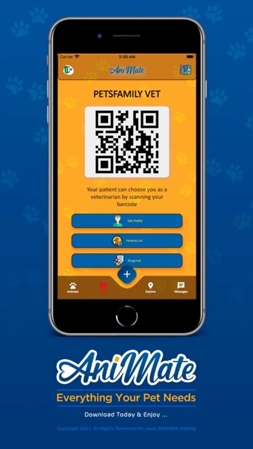 Animate is suitable for pet hospitals and veterinarians. You can register your workplace location in the app, mention your specialties, and add your address and telephone number so that anyone needing your help could find you easily. Veterinarians can also invite their previous patients to the app and manage their workflow through our app. Also, pet hospitals can acquire a QR Code. This will enable the patients to become members of that hospital in the app by scanning the code. The hospital will also be able to manage the medication and remind the owners to have their pets vaccinated.