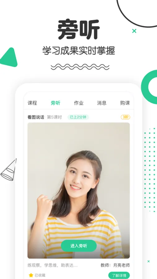 口才喵一对一在线教育学习,家长可随时旁听,和孩子一起见证教学效果,过程更透明。