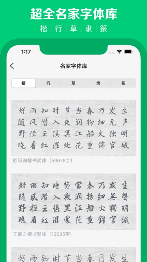 练字写字是一款手机生成字体的工具,内置多种字帖模板和书法字体,输入文字内容即可生成多种字体的硬笔楷书行书草书练字字帖,适合汉字初学者、书法水平提升者等全年龄段用户使用。