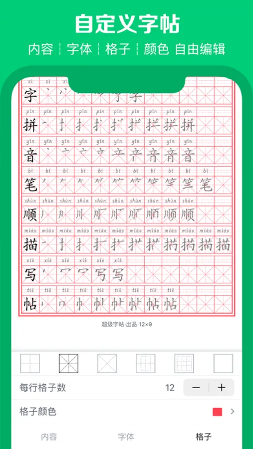 ·多类型字帖模板:汉字、拼音、英文、数字、控笔;