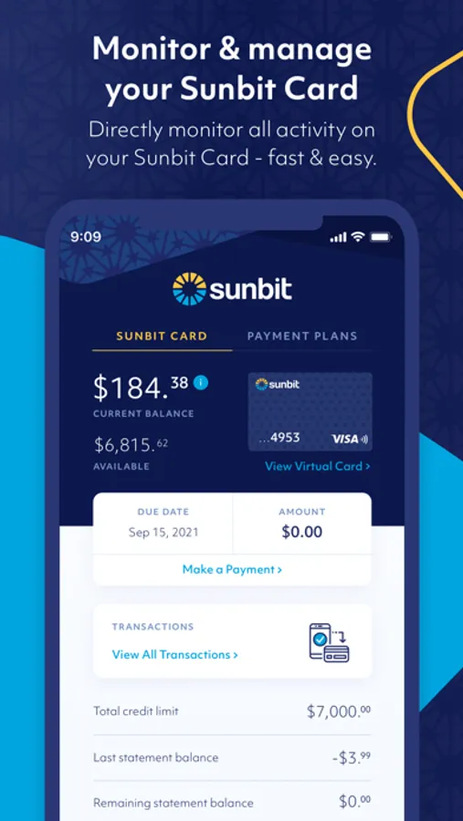 Loans are made by, and the Sunbit Card is issued by, Transportation Alliance Bank, Inc., dba TAB Bank, which determines qualifications for and terms of credit. The Sunbit Card is issued pursuant to a license from Visa U.S.A. Inc.