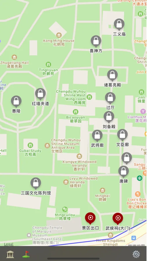 The audio guide introduces the famous scenic spots and routes of Wuhou Temple.
