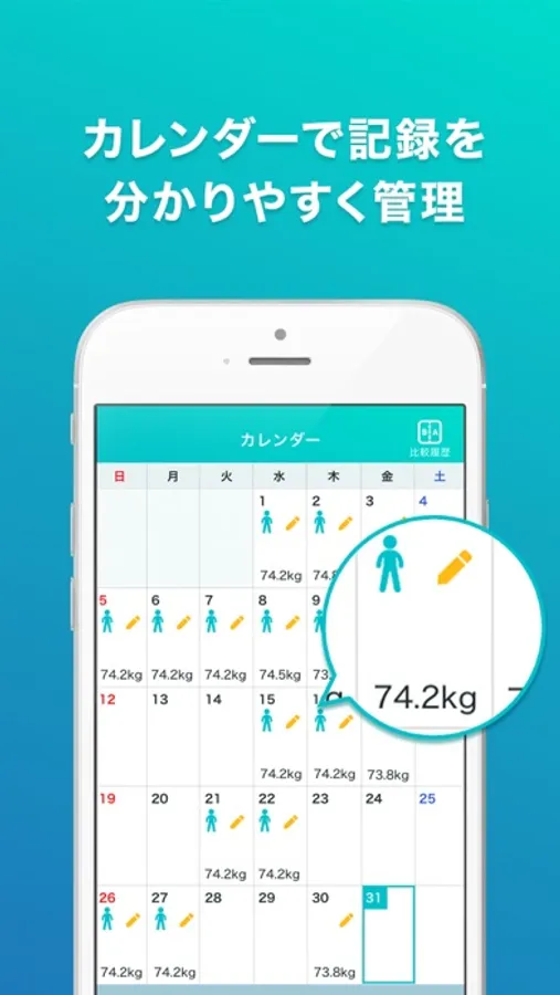 5. Numerical management from the diet start date to the target / increase / decrease with the graph function